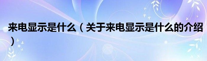 大家好,小新來為大家解答以上的問題。來電顯示是什么,關(guān)于來電顯示是什么的介紹很多人還不知道,現(xiàn)在讓我們一起來看看吧!