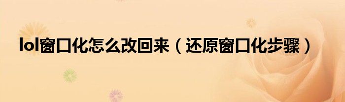 大家好,伊人來為大家解答以上問題。lol窗口化怎么改回來,還原窗口化步驟很多人還不知道,現(xiàn)在讓我們一起來看看吧!