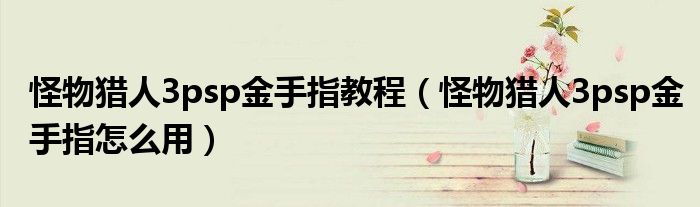 大家好,伊人來為大家解答以上問題。怪物獵人3psp金手指教程,怪物獵人3psp金手指怎么用很多人還不知道,現(xiàn)在讓我們一起來看看吧!