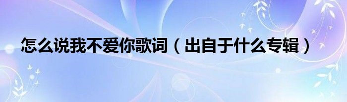 大家好,伊人來為大家解答以上問題。怎么說我不愛你歌詞,出自于什么專輯很多人還不知道,現(xiàn)在讓我們一起來看看吧!