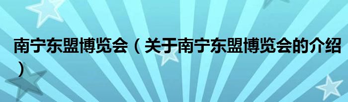 大家好,小新來(lái)為大家解答以上的問(wèn)題。南寧東盟博覽會(huì),關(guān)于南寧東盟博覽會(huì)的介紹很多人還不知道,現(xiàn)在讓我們一起來(lái)看看吧!