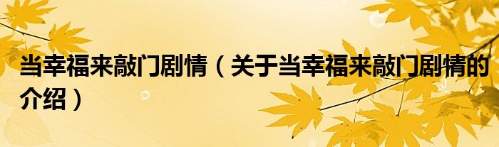 大家好,小新來為大家解答以上的問題。當(dāng)幸福來敲門劇情,關(guān)于當(dāng)幸福來敲門劇情的介紹很多人還不知道,現(xiàn)在讓我們一起來看看吧!