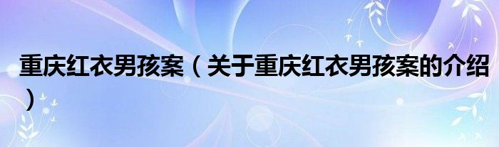 大家好,小新來(lái)為大家解答以上的問(wèn)題。重慶紅衣男孩案,關(guān)于重慶紅衣男孩案的介紹很多人還不知道,現(xiàn)在讓我們一起來(lái)看看吧!