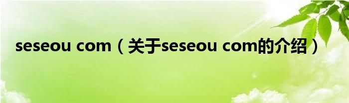 大家好,小新來為大家解答以上的問題。seseou com,關(guān)于seseou com的介紹很多人還不知道,現(xiàn)在讓我們一起來看看吧!