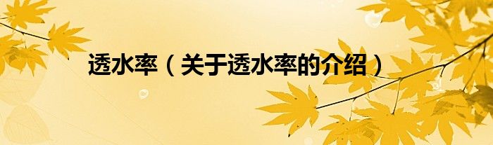 大家好,小新來為大家解答以上的問題。透水率,關(guān)于透水率的介紹很多人還不知道,現(xiàn)在讓我們一起來看看吧!