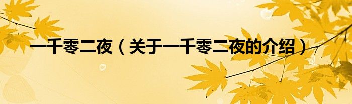 大家好,小新來為大家解答以上的問題。一千零二夜,關(guān)于一千零二夜的介紹很多人還不知道,現(xiàn)在讓我們一起來看看吧!