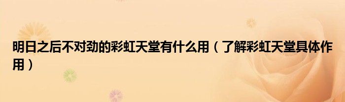 大家好,伊人來為大家解答以上問題。明日之后不對(duì)勁的彩虹天堂有什么用,了解彩虹天堂具體作用很多人還不知道,現(xiàn)在讓我們一起來看看吧!