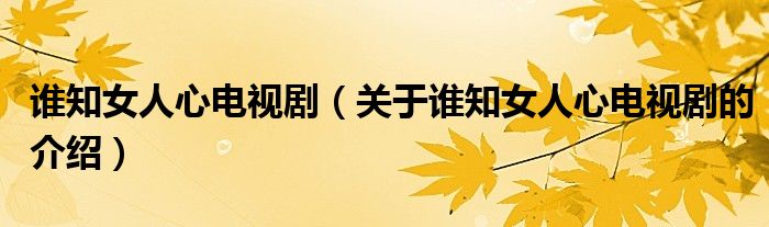 大家好,小新來為大家解答以上的問題。誰知女人心電視劇,關(guān)于誰知女人心電視劇的介紹很多人還不知道,現(xiàn)在讓我們一起來看看吧!