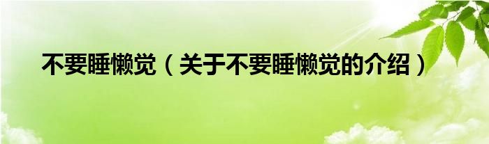 大家好,小新來(lái)為大家解答以上的問(wèn)題。不要睡懶覺(jué),關(guān)于不要睡懶覺(jué)的介紹很多人還不知道,現(xiàn)在讓我們一起來(lái)看看吧!