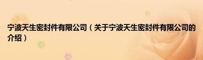 大家好,小新來為大家解答以上的問題。寧波天生密封件有限公司,關(guān)于寧波天生密封件有限公司的介紹很多人還不知道,現(xiàn)在讓我們一起來看看吧!