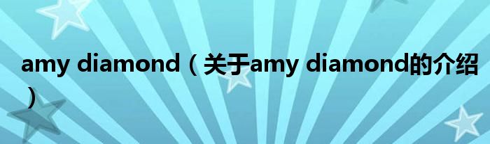 大家好,小新來(lái)為大家解答以上的問(wèn)題。amy diamond,關(guān)于amy diamond的介紹很多人還不知道,現(xiàn)在讓我們一起來(lái)看看吧!