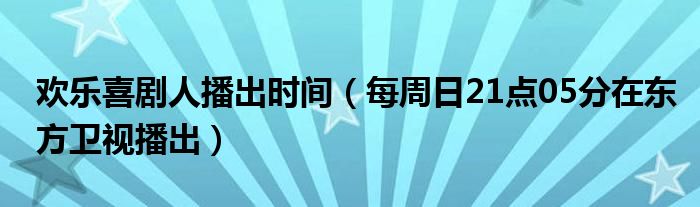 大家好,伊人來為大家解答以上問題。歡樂喜劇人播出時間,每周日21點05分在東方衛(wèi)視播出很多人還不知道,現在讓我們一起來看看吧!