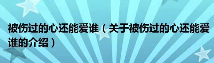 大家好,小新來為大家解答以上的問題。被傷過的心還能愛誰,關(guān)于被傷過的心還能愛誰的介紹很多人還不知道,現(xiàn)在讓我們一起來看看吧!