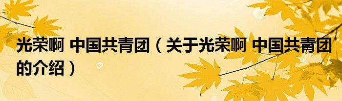 大家好,小新來為大家解答以上的問題。光榮啊 中國共青團(tuán),關(guān)于光榮啊 中國共青團(tuán)的介紹很多人還不知道,現(xiàn)在讓我們一起來看看吧!