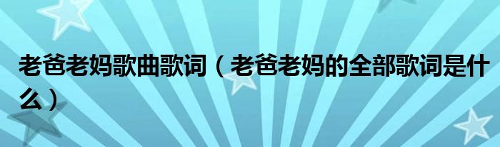 大家好,伊人來為大家解答以上問題。老爸老媽歌曲歌詞,老爸老媽的全部歌詞是什么很多人還不知道,現(xiàn)在讓我們一起來看看吧!