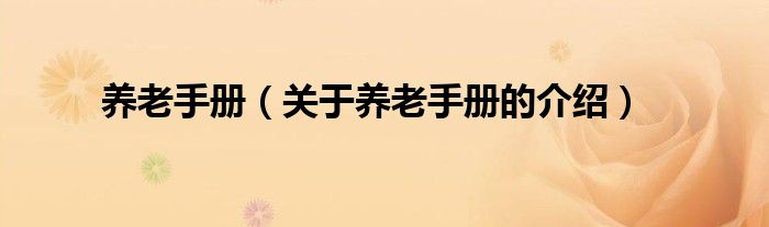 大家好,小新來為大家解答以上的問題。養(yǎng)老手冊,關(guān)于養(yǎng)老手冊的介紹很多人還不知道,現(xiàn)在讓我們一起來看看吧!
