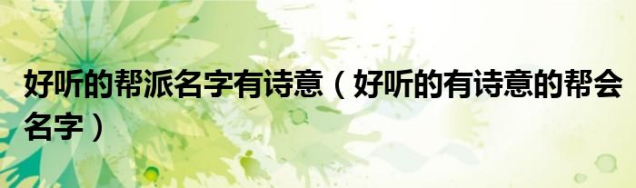大家好,伊人來為大家解答以上問題。好聽的幫派名字有詩意,好聽的有詩意的幫會名字很多人還不知道,現(xiàn)在讓我們一起來看看吧!