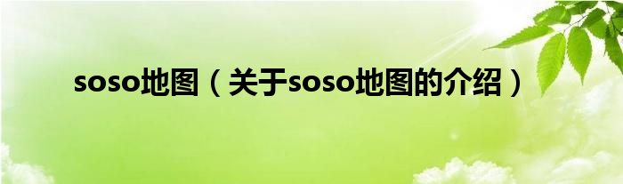 大家好,小新來為大家解答以上的問題。soso地圖,關于soso地圖的介紹很多人還不知道,現(xiàn)在讓我們一起來看看吧!