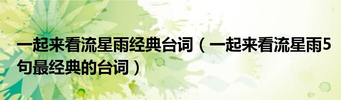 大家好,伊人來為大家解答以上問題。一起來看流星雨經(jīng)典臺詞,一起來看流星雨5句最經(jīng)典的臺詞很多人還不知道,現(xiàn)在讓我們一起來看看吧!