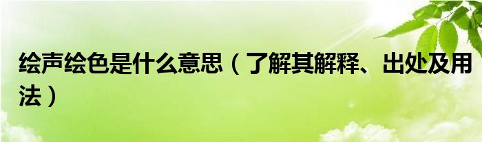 大家好,伊人來為大家解答以上問題。繪聲繪色是什么意思,了解其解釋、出處及用法很多人還不知道,現(xiàn)在讓我們一起來看看吧!