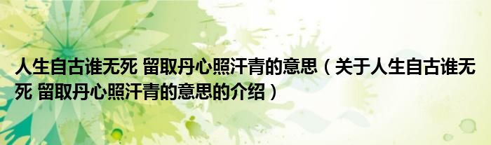 大家好,小新來(lái)為大家解答以上的問(wèn)題。人生自古誰(shuí)無(wú)死 留取丹心照汗青的意思,關(guān)于人生自古誰(shuí)無(wú)死 留取丹心照汗青的意思的介紹很多人還不知道,現(xiàn)在讓我們一起來(lái)看看吧!