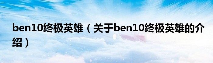 大家好,小新來為大家解答以上的問題。ben10終極英雄,關(guān)于ben10終極英雄的介紹很多人還不知道,現(xiàn)在讓我們一起來看看吧!