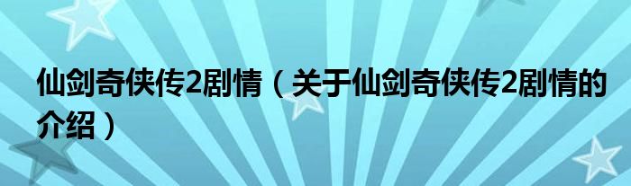 大家好,小新來為大家解答以上的問題。仙劍奇?zhèn)b傳2劇情,關(guān)于仙劍奇?zhèn)b傳2劇情的介紹很多人還不知道,現(xiàn)在讓我們一起來看看吧!