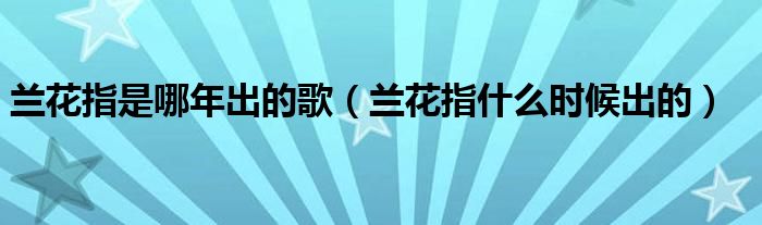 大家好,伊人來為大家解答以上問題。蘭花指是哪年出的歌,蘭花指什么時候出的很多人還不知道,現(xiàn)在讓我們一起來看看吧!