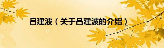 大家好,小新來為大家解答以上的問題。呂建波,關(guān)于呂建波的介紹很多人還不知道,現(xiàn)在讓我們一起來看看吧!
