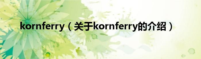 大家好,小新來為大家解答以上的問題。kornferry,關于kornferry的介紹很多人還不知道,現(xiàn)在讓我們一起來看看吧!