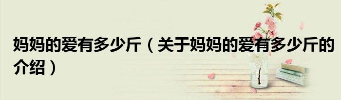 大家好,小新來(lái)為大家解答以上的問(wèn)題。媽媽的愛(ài)有多少斤,關(guān)于媽媽的愛(ài)有多少斤的介紹很多人還不知道,現(xiàn)在讓我們一起來(lái)看看吧!
