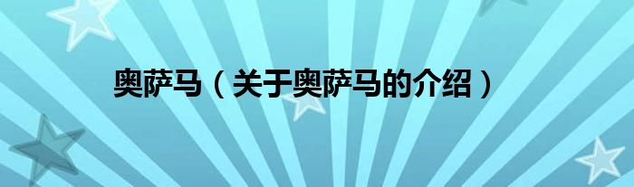 大家好,小新來為大家解答以上的問題。奧薩馬,關于奧薩馬的介紹很多人還不知道,現(xiàn)在讓我們一起來看看吧!