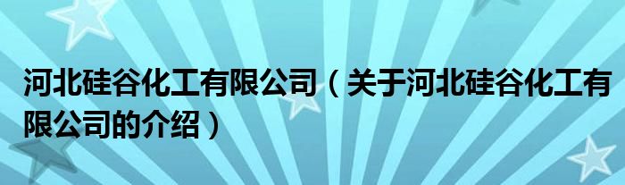 大家好,小新來(lái)為大家解答以上的問(wèn)題。河北硅谷化工有限公司,關(guān)于河北硅谷化工有限公司的介紹很多人還不知道,現(xiàn)在讓我們一起來(lái)看看吧!