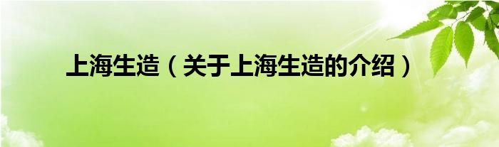 大家好,小新來為大家解答以上的問題。上海生造,關(guān)于上海生造的介紹很多人還不知道,現(xiàn)在讓我們一起來看看吧!