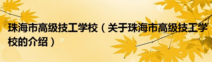 2、前身為珠海市工業(yè)技工學(xué)校。