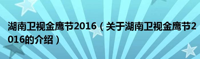 大家好,小新來為大家解答以上的問題。湖南衛(wèi)視金鷹節(jié)2016,關(guān)于湖南衛(wèi)視金鷹節(jié)2016的介紹很多人還不知道,現(xiàn)在讓我們一起來看看吧!