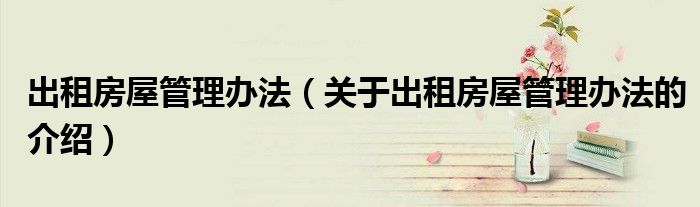 大家好,小新來為大家解答以上的問題。出租房屋管理辦法,關于出租房屋管理辦法的介紹很多人還不知道,現(xiàn)在讓我們一起來看看吧!
