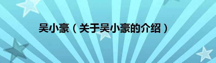 大家好,小新來為大家解答以上的問題。吳小豪,關(guān)于吳小豪的介紹很多人還不知道,現(xiàn)在讓我們一起來看看吧!