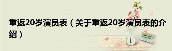 大家好,小新來(lái)為大家解答以上的問(wèn)題。重返20歲演員表,關(guān)于重返20歲演員表的介紹很多人還不知道,現(xiàn)在讓我們一起來(lái)看看吧!