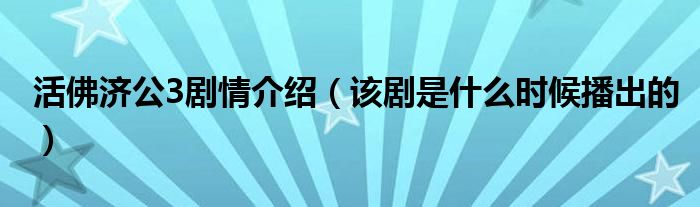 2、該劇主要講述了濟公帶領(lǐng)梁光、趙斌等人為老百姓排憂解難、啟迪世人的故事,穿插降龍神魔,以及濟公活佛與當(dāng)?shù)貝喊远分嵌酚碌墓适?。該劇?012年7月25日在江蘇衛(wèi)視首播。