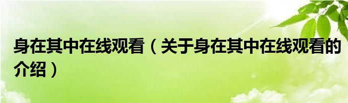 大家好,小新來為大家解答以上的問題。身在其中在線觀看,關(guān)于身在其中在線觀看的介紹很多人還不知道,現(xiàn)在讓我們一起來看看吧!