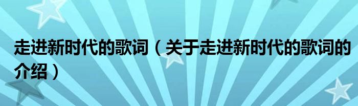 大家好,小新來為大家解答以上的問題。走進新時代的歌詞,關于走進新時代的歌詞的介紹很多人還不知道,現(xiàn)在讓我們一起來看看吧!