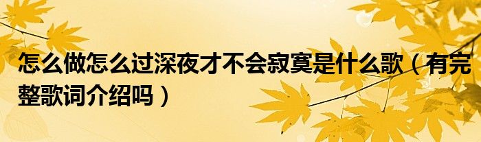 大家好,伊人來為大家解答以上問題。怎么做怎么過深夜才不會寂寞是什么歌,有完整歌詞介紹嗎很多人還不知道,現(xiàn)在讓我們一起來看看吧!