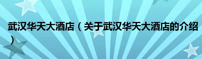 大家好,小新來為大家解答以上的問題。武漢華天大酒店,關于武漢華天大酒店的介紹很多人還不知道,現在讓我們一起來看看吧!
