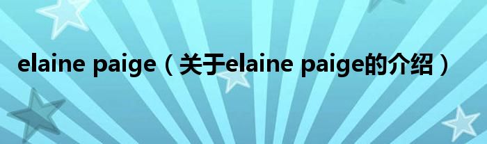 大家好,小新來為大家解答以上的問題。elaine paige,關(guān)于elaine paige的介紹很多人還不知道,現(xiàn)在讓我們一起來看看吧!