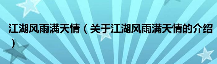 大家好,小新來(lái)為大家解答以上的問(wèn)題。江湖風(fēng)雨滿天情,關(guān)于江湖風(fēng)雨滿天情的介紹很多人還不知道,現(xiàn)在讓我們一起來(lái)看看吧!