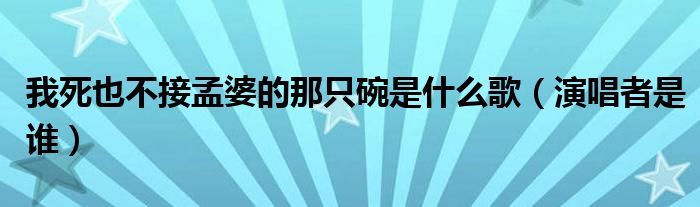 大家好,伊人來為大家解答以上問題。我死也不接孟婆的那只碗是什么歌,演唱者是誰很多人還不知道,現(xiàn)在讓我們一起來看看吧!