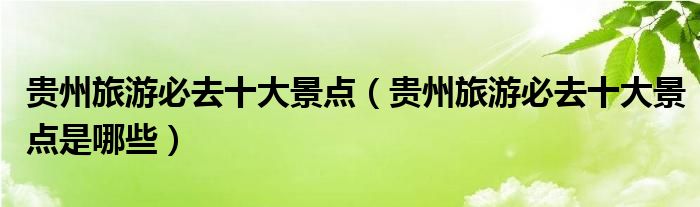 大家好,伊人來為大家解答以上問題。貴州旅游必去十大景點,貴州旅游必去十大景點是哪些很多人還不知道,現(xiàn)在讓我們一起來看看吧!