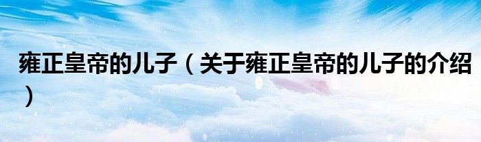 大家好,小新來為大家解答以上的問題。雍正皇帝的兒子,關(guān)于雍正皇帝的兒子的介紹很多人還不知道,現(xiàn)在讓我們一起來看看吧!