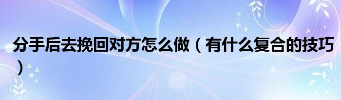 大家好,伊人來為大家解答以上問題。分手后去挽回對(duì)方怎么做,有什么復(fù)合的技巧很多人還不知道,現(xiàn)在讓我們一起來看看吧!